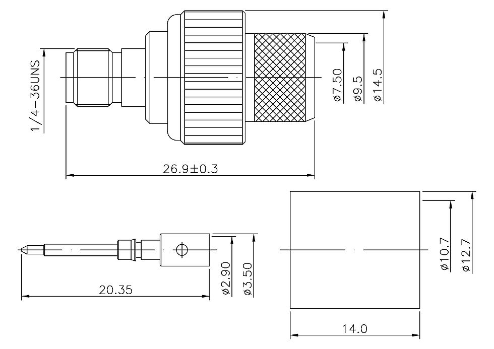 The interface dimensions for SMA connectors are listed in MIL-STD-348. The SMA connector employs a 1/4-inch diameter, 36-thread-per-inch threaded barrel.